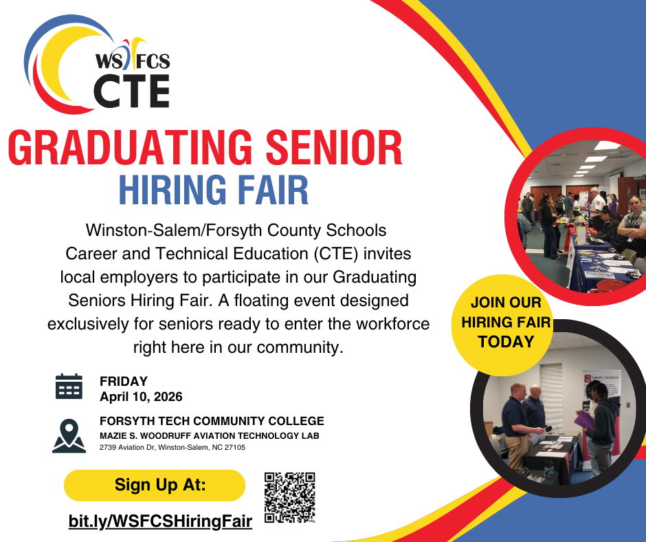 Winston-Salem/Forsyth County Schools Career and Technical Education (CTE) would liketo invite you to participate in our upcoming Graduating Seniors Hiring Fair.This event is designed as a floating hiring fair specifically […]